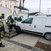 Nach eintreffen des technischen Zuges (KRFS – ATF – TLFA2000) wurde mit wenigen, gekonnten Handgriffen der PKW mittels Ladekran des ATF geborgen und gesichert abgestellt.
